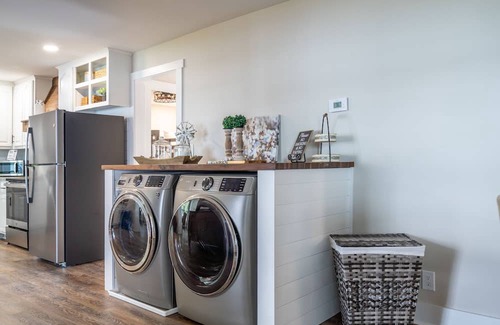 Covered Porch: Unwind and savor the fresh country air on our inviting covered porch, where you can lounge in the adirondack chairs and admire the peaceful surroundings.