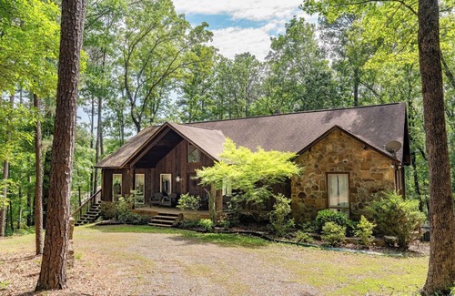 This beautiful newer home is located right on Greers Ferry Lake with lake access! It features 4 bedrooms and 3 baths with three King beds and one queen bed. The main level has all of the amenities, a beautiful open floor plan with 2 flat screen TV's, and a nice upper deck with outdoor dining and a gas grill. The lower level has a game-room including pool, darts, and more! The 4th bedroom and 3rd bathroom are located downstairs, and there is also a covered porch downstairs as well. There is not a designated pathway to the lake yet, though it is a steady, mostly flat, walk through the woods. There is also no boat dock associated with this rental property. Come visit Tannenbaum and stay in this stunning ray of sunshine today!