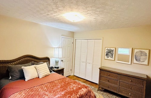 You will have a access to 2 bedrooms with queen beds and an office space with a futon that folds down into an extra bed. There is one bathroom which has two sinks and a nice, large bathtub. There’s a comfy living room with plenty of seating, fully stocked kitchen, and a dining room that seats 4. The sunroom is a cozy space to have a meal or just hang out. In the sunroom, there is a 6 person dining table to accommodate larger parties. You’ll also have access to a washer and dryer in the unit if needed. Just a quarter of a mile walk or drive from the home, you’ll have access to a serene, flowing river where you are welcome to fish or just relax.