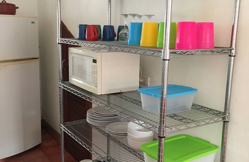 La Casa de Dona Irma is a sparkling clean, centrally located 2 bdrm townhouse w/ all amenities. Sleeps up to 6 guests. Two bdrms each with 1 full bed + 1 single bed. Two private baths w/ walk in shower + granite countertop. One 1/2 bath on first floor. Ceiling fans in all rooms. Cathedral ceilings + small balcony in both bedrooms. Oversized closet in each bdrm. Full kitchen with full size stove, refrigerator, microwave, toaster oven, coffee maker, granite countertop. All pots + pans + all utensils. Refrigerator is stocked daily w/ beer, wine + soft drinks. Breakfast bar. Daily maid service included in rate. Purified water included. Fast internet. Color t/v w/ cable, dvd player w/ dvd library. Outdoor sitting area with comfy chairs + hammock. Breakfast + meals available at our highly rated garden cafe w/ spectacular view next door. Professional Swedish massage available at our massage pavilion next door. Bilingual staff. Quiet neighborhood. Close to all restaurants, cafes, shops + bars.