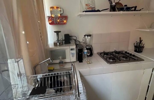 A living room and a dining area are featured at this 1-bedroom, 1.5-bathroom rental. Enjoy the WiFi and TV. Prepare a home-cooked meal in the kitchen, complete with a stovetop and a refrigerator, as well as a coffee maker, a microwave, and cookware. And there's access to laundry facilities, so you can even pack a bit lighter. Other amenities include bed sheets and an ironing board.