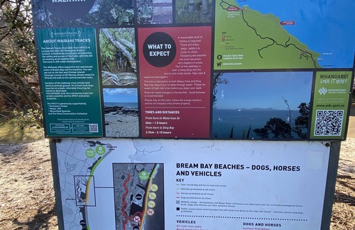 Waipu Cove up to Waipu township, this is a 8km trail one way along the side of the road. There is also a road/mountain bike trail up Cullen road and onto the Te Araroa trail and looping back through Langs to Waipu Cove, 18km round trip with stunning views over the whole of bream bay and out to Whangarei heads.