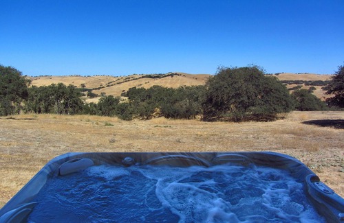 Nestled in the oak treed hills of Paso Robles is our beautiful vacation home ready for the company of discerning guests. Whether a romantic “getaway”, a special birthday or a family reunion, SweetLife Villa will not disappoint. Designed in mind to enjoy the beautiful views of valley’s, vineyards and hilltops, SweetLife Villa is abundant with light. We have 2 masters, each with a private bath and 2 guest rooms, each with 2 full beds and all have lovely bedding, promising a great nights' sleep. Each room has a walk-in closet and ceiling fan. Skylights, vaulted ceilings and huge windows bring the outdoors inside. A wrap around porch is ideal for watching the hawks soar and the deer roam and where you will find a spacious outdoor Spa and Fire Pit.