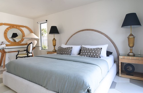 A large living room has a comfortable Kreiss sectional sofa, which can seat up to 6 people - with several additional chic lounges. Dining Room seats 8, and has it’s own private south facing patio for lounging.