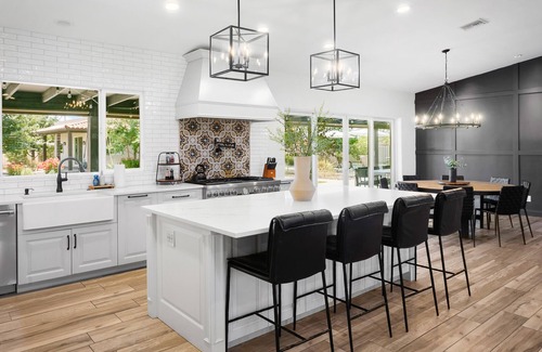Exceptional designer inspired modern interiors and outdoor luxury. Come and enjoy the DOS CASAS! This property has a main house, guest house and attached casita with room for everyone. This luxurious property has 8 bedrooms and is perfect for large family gatherings. The spacious backyard sits on a 3/4 acre lot with a backyard separating the main house from the guest house.