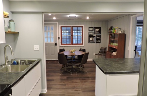 Welcome to the "Middle House", where you're minutes from civilization yet you feel in the middle of nowhere. Step out the front door and hop on the Ice Age Trail, head south to Holy Hill and explore the Basilica or head north to Pike Lake State Park and enjoy the beach just minutes from the front door. This 2 bedroom fully remodeled cabin is warm and inviting, a great place to relax after your adventures in the "Middle" of the Kettle Moraine Forest.