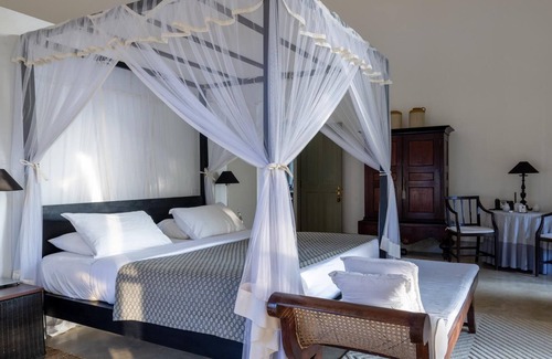 The well-preserved architectural features of our rooms retain their original colonial charm, blending traditional styles with modern comforts, for an intimate holiday at our beach-front boutique villa. A traditional four-poster double bed blanketed in plush bed linen with a vibrant throw over, takes centre stage in all our rooms together with artistic painting, amidst an earthen ambiance. Fitted with essential amenities and features.