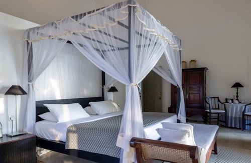 The well-preserved architectural features of our rooms retain their original colonial charm, blending traditional styles with modern comforts, for an intimate holiday at our beach-front boutique villa. A traditional four-poster double bed blanketed in plush bed linen with a vibrant throw over, takes centre stage in all our rooms together with artistic painting, amidst an earthen ambiance. Fitted with essential amenities and features.