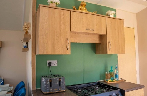 There is large kitchen space that includes a gas oven and hob, undercounter fridge, kettle, microwave, toaster, all cutlery, crockery and cooking utensils. There are also lots of cupboard space for those longer breaks.