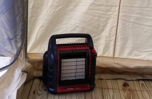 Your Tentrr campsite includes a 10'x12' (120 square feet) safari-style canvas tent on a raised wooden platform. Inside the tent you'll find one queen bed or a queen-size bunk bed (see photos for the exact setup). The tent is big enough for the bed plus one or two extra sleeping bags on the floor. Aside from the canvas tent, campers can also use the extra 5-person pop-up dome tent that’s provided. You'll also have a 6-ft picnic table, outdoor fire pit, 2 Tentrr Adirondack chairs, and a heating source to keep you warm and toasty at night.