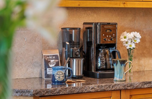 The private backyard nests among aspen trees and enables you to enjoy cool evenings in a luxury hot tub that fits up to eight people. The spacious upper deck invites you to sit, relax, watch hummingbirds, drink coffee or share a meal while enjoying views of the Teton Valley. The deck also has a space heater for cool mornings and evenings.
