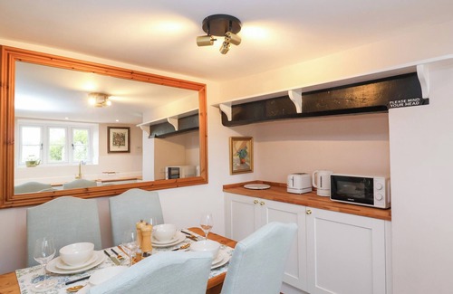 Thatchers End, a cottage, consists of a kitchen/diner with electric oven, electric hob, microwave, fridge/freezer, dishwasher, washing machine, kettle, toaster, and dining seating , and a sitting room with Smart TV, corner sofa, and woodburning stove. The bedrooms consist of a king-size and double. There is a shower room with walk-in shower, basin, and WC. WiFi, fuel, power, bed linen, and towels are included in the rent. Outside, there is an enclosed rear garden with lawn and parking for two cars on the private driveway. Sorry, no pets and no smoking. Within 3.5 miles you will find a shop and within 0.7 miles a pub. A stay at Thatchers End promises to be one to remember. Note: This property sleeps a maximum of two guests. Note: This property does not accept children. Note: This property has a Good Housekeeping Bond of 200GBP