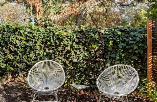 Elevate your mornings with a refreshing shower in our stylishly tiled bathroom, setting the tone for a fantastic day. Enjoy breakfast by the folding doors, which open to vibrant gardens and a serene atmosphere. The mid-century modern interior features large-screen TVs in both the bedroom and living room. Our detached house exudes tranquility and freedom, inviting you to bask in the backyard sunlight. Experience the perfect blend of comfort and relaxation during your stay!