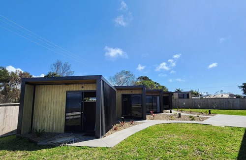 Situated at Kaimaumau, in the beautiful Far North of New Zealand, we have created a unique and spacious home away from home. A large central living area with kitchen dining and lounging, is surrounded by 6 cozy studios all with queen beds. All have sea views and are linked to the central living area by a series of garden paths. There are two bathrooms (shower, toilet and vanity in each bathroom), a separate laundry, and amongst the gardens an outdoor bath and outdoor shower.