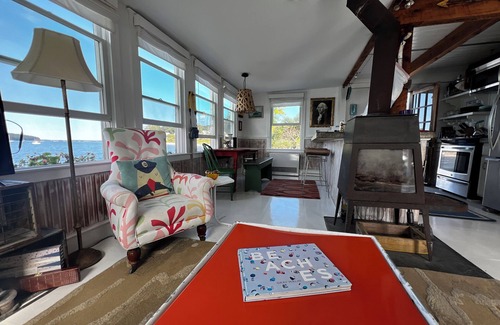 The Beach House is an open concept design with 180 degree views of the ocean and windows on all sides. It sits on a sea wall on the Centennial Beach with amazing views of surrounding islands and the absolute best spot to watch the sunset on Peaks. Steps away from a sandy beach has a public boat ramp nearby for kayaking, boating, etc. and only a ten minute walk from the Casco Bay Ferry Terminal, with taxi service available if coming to the island on foot! There is plenty of room to park your car at the cottage. We might be biased, but the Beach House is the most magical spot on the island.
