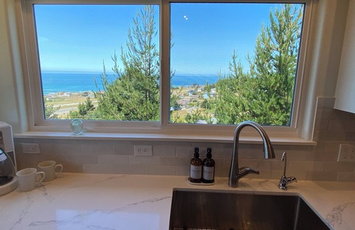 Relax with family or friends at this peaceful newly remodeled three bedroom two story modern home. Beautiful ocean views shine from practically every window in the house. Just a short walk or drive down the hill brings you to Shelter Cove beach, the campground deli and store, the airport, nine holes of golf, Gyppo Ale Mill and Point Delgada. Or just stay at the house, relax and BBQ to the sounds of the buoys off shore and the sea lions calling from the point. The Beach House is a great place to be...