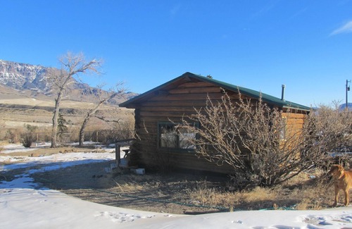 Nestled only 1 mile from the Shoshone National Forest and 25 miles from the east gate to Yellowstone, this unique cabin is a perfect location for people traveling to Yellowstone National Park. This cabin has 1 queen bed, full size futon, and also a kitchen. The views from the deck of the mountains and wildlife are breathtaking! So much hiking, fishing, and sightseeing just out the door or close by. This 300 square foot cabin is cozy for 2 or 4.