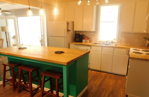 The house has all necessary appliances and a fully-furnished kitchen with a Keurig Duo coffeemaker. There is seating for 12 at the two dining tables with additional seating at the new kitchen island. There is more than ample available cabinet space for the storage of food, appliances and kitchenware you may choose to bring with you.