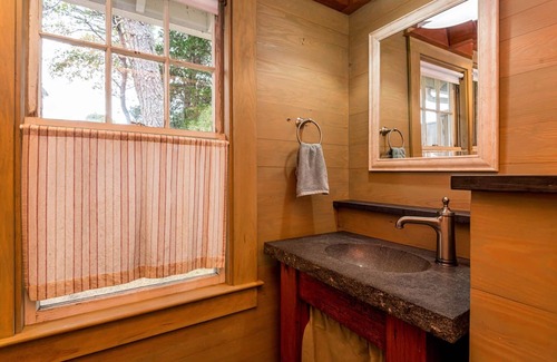 Fort Hill Cottage #A has been thoughtfully and stylishly renovated, integrating warm natural materials and soothing design. Skillfully renovated with comfort in mind, this home has soaring ceilings with an open floor plan and tons of natural light. The living room and dining area combination has a natural stone fireplace, dining table for four, flat screen TV with Netflix and high speed Internet. The well appointed kitchen has Bosch stove and dishwasher, microwave and all the serviceware you need to whip up a great home cooked meal. There is a serene bedroom with queen bed, all you need to bring are sheets and towels. The large bathroom is remodeled with stall rain shower, convenient storage and stacked washer and dryer. We have a comfy couch and chair, newer mattresses, working wood burning fireplace, new central gas heat and air conditioning, two large skylights, ceiling fans galore, stunning natural wood floors and high end Contemporary fixtures.