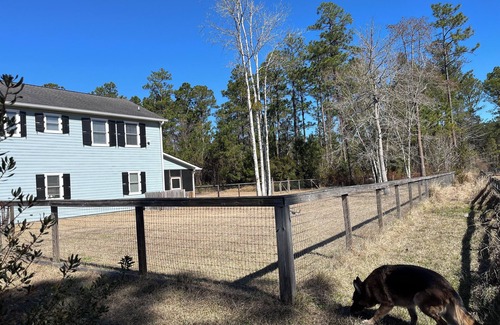 Canoe/Kayak Launch (free) and thePalmettoWalking Trail. 20 minutes Mt. Pleasant and 35 minutes to Downtown Charleston for shopping and fine dining. The Cottage has granite countertops, stainless steel appliances, a large country kitchen table, breakfast bar and kitchen island. The bathroom has a beautiful soaking tub and rain shower. The entire 5 acre property is for your use (with the exception of the garage). The backyard area is fenced, making it great for children and dogs. There is a 100 foot dog run with a 15 foot lead, great to give some outdoor time to your pup. There is a pond on the property that has open access from the yard. Please mind children for their safety. Please note that the entire homes living spaces on the second floor. You must climb a staircase to access it. This property is 100% non-smoking, non-vaping