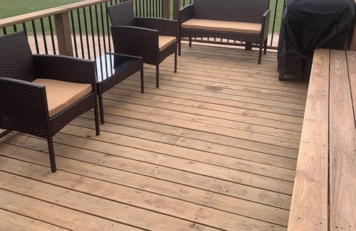 This home is a comfortable 3 bedroom, 2 bath with laundry in secondary bedroom that boasts a master with king bed and seating area. Second bedroom has queen bed, third bedroom has bunk bed with twin on the top and double on the bottom. Full kitchen for you to cook meals, separate dining room. Living room has TV with DVD player and Wii. This house may make a “creak” or two but don’t be alarmed that’s what gives it character and why it’s named The “Creak” House!!