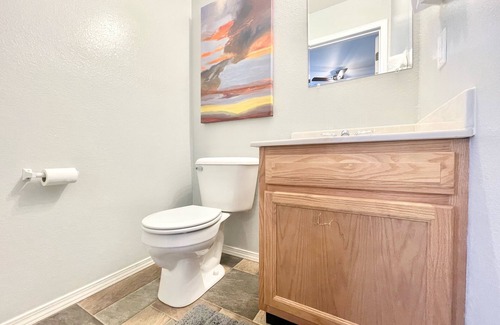 We’re so excited to welcome you to this stylish home that features a large living room with 58” smart TV, desk space and a super comfy sectional. The spacious Kitchen is set up with your very own coffee bar. The master bedroom includes a queen size bed and smart tv. The guest bedroom has a full/twin bunkbed with a twin roll out. This room also includes a futon. Washer/Dryer also Included!