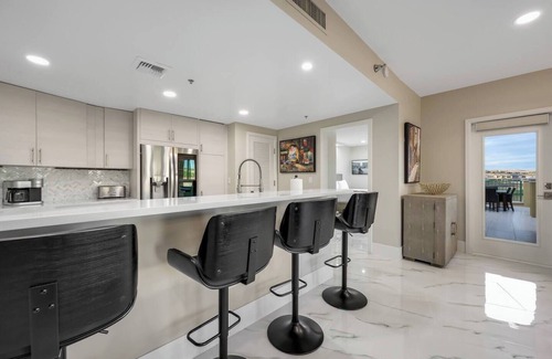 In line with the luxurious Florentine theme, the Penthouse is fully equipped with the latest technology and appliances, ranging from Sonos speakers to high-definition TVs and an in-unit washer and dryer. In addition, guests have access to the Viera Complex amenities which include two resort-style pools and a modern fitness center. This Penthouse also has the option for a parking pass in the connected parking structure (for a refundable fee).