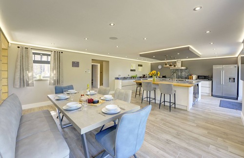 The Gate House consists of a kitchen/diner with an lectric oven and hob, microwave, fridge/freezer, dishwasher, kettle, toaster and two wine chillers, a utility with washing machine and tumble dryer, and a sitting room with woodburning stove and Smart TV. The bedrooms include a king-size, another king-size (zip/link) with an en-suite, a king-size (zip/link) and a ground-floor king-size (zip/link) as well as a separate bathroom. Outside there is a non-enclosed front garden with furniture and hot tub plus off-road parking for two cars. Two well-behaved pets are welcome, but sorry, no smoking at this property. You can find a shop within 1.8 miles and a pub within 1.9 miles. WiFi, fuel, starter parck for the wood burner,power, bed linen and towels are all included in the price. The Gate House is a wonderful destination for your stay in Yorkshire. Note: Gym on site in separate building. No stag, hens or similar parties. Please note: this property accepts a minimum of 3 nights