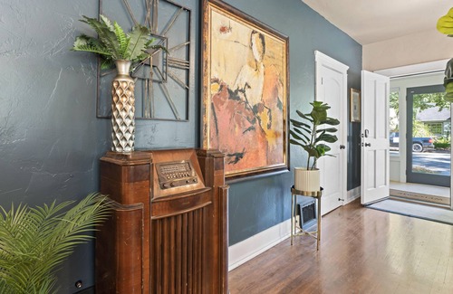 This jewel of a home is nestled in the center of the prestigious Historic North End district of Boise. Glowing with charm, this luxurious private spa & poolside home is the perfect getaway for any traveler year round. Our basement clubhouse features an Infinity game table and theater room perfect for all ages. Within walking distance to Camel's Back Park and Hyde Park featuring playgrounds, eateries, coffee shops, shopping, hiking and mountain bike trails.