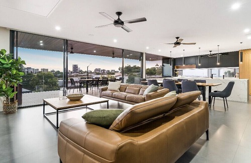 The Glass house is the perfect way to enjoy a luxurious stay in the Top End. The four level home with a glass elevator ensures all living spaces and bedrooms has views over the Darwin skyline and to the ocean. All guests have ample space, including multiple living areas, balconies, a large raised pool and all the amenities to ensure your stay is one to remember.