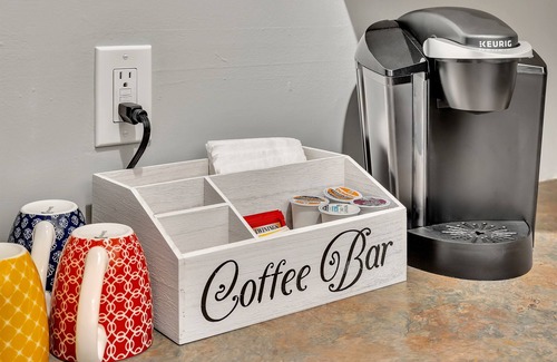 Our coffee bar with a Keurig and K cups is perfect for a relaxing cup of joe before heading out to explore the city. And speaking of exploration, our location can't be beat - we're just two blocks away from the Saratoga Race Track and three blocks from Downtown Saratoga and Broadway in a peaceful, quaint neighborhood.