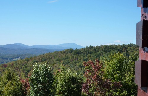 'The Great Escape' offers a large, upper-level master bedroom with a King sized bed, as well as a full bath with a Jacuzzi tub and vanity with granite counter top, and a walk-in cedar closet. An upper level 15'x32' spacious deck provides a four place Hot Tub/Spa, two place swing, glider rocker, picnic table, and LP Gas Grill. A second spacious bathroom is located on the first level with an adjoining wet/dry sauna, and a two car garage. Additional amenities include a gas burning fireplace with a remote, flat screen TV with a blue ray DVD, two sleeper sofas, two large 5'x6' windows facing to the East and West, two large sliding glass doors leading to a spacious deck with panoramic bird's eye views from 3800 feet of the Blue Ridge Parkway and Grandfather Mountain, a large well equipped kitchen with an eight foot bar, wormy maple cabinets, and granite counter tops, a dining table with six chairs, and front loader washer and dryer. The cabin has a southern pine T&G interior throughout with oak hard wood flooring, and cathedral ceilings in the kitchen/dining area and sitting area where you will be able to feel the warmth