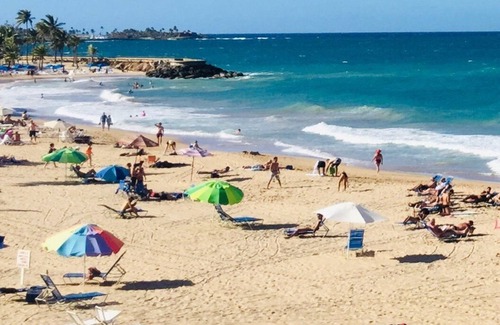 Modern Nautical open floor plan studio apt. with wall to wall ocean view, beach right in front. Have a chic brunch at Dulcesalado or at Sabrina's. Dinner alfresco at one of the cafes at Paseo De La Fama Park on the beach. FREE: Thurs. live Jazz at the Vanderbilt. Saturdays, live salsa music & dancing at The Marriott across the street. Calle Louisa trendy cafes & clubs or Placita Santurce block party every night with live music. Go to T-Mobile Central for live outdoor music and multiple restaurant choices. Brunch by the pool at the Vanderbilt with live DJ. There is no 24 hrs. check in, Check In time are from 1:00 pm thru 7:00 pm