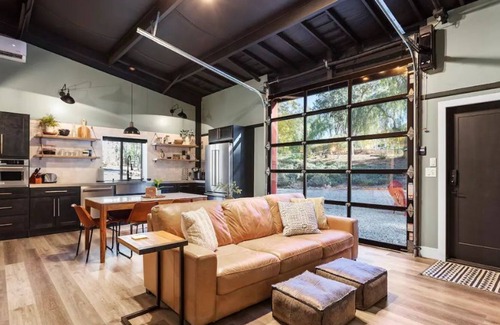 The Workshop is an industrial style loft apartment set in a truly relaxing and serene setting that will make you never want to leave. Watch the bunnies and squirrels from the mirrored glass garage door and open it to hear the birds singing. Put down the automatic shade at night for privacy.