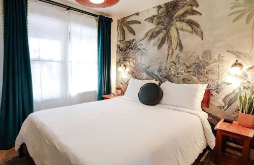 The Jungle Bungalow was freshly remodeled in 2020, and we're excited to show off the improvements! Marble bathroom tile, fresh paint throughout, fun wallpaper, new kitchenette, and of course a super comfortable new Sealy Memory foam bed - just to name a few.