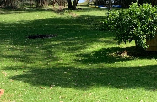 Sit on the deck either upstairs or downstairs and enjoy birds galore, kangaroos and fish jumping just out front all add to this special place. Note the lake is a natural body of water with tides , and natural vegetation.