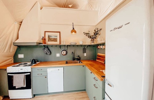 Indulge in the perfect romantic escape at our idyllic dome retreat. Unwind together in your private hot tub surrounded by breathtaking ocean views that set the stage for unforgettable moments. Inside, you’ll find a cozy queen bed with luxurious linens, a full bathroom, and a charming fully equipped kitchen, ideal for crafting intimate meals. Tucked away in serene privacy, this enchanting getaway is your haven for relaxation, connection, and romance.