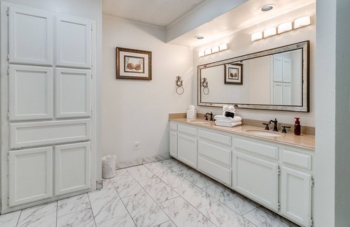 Our home boasts of 5 bedrooms, each with its own television (the master bedroom is 55" and the rest are 43") and 3.5 bathrooms. Our home is able to sleep 13 between the bedrooms, a pull-out sofa (queen) in the seating room, and a chaise lounger in the sunroom.