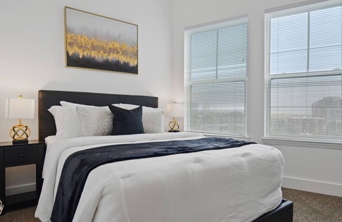 The Midknight Chateau is a very elegantly designed 2 bed 2 bathroom apartment! With modern furniture & luxury finishes, our guest will be satisfied with a comfortable, pleasant stay! Step into a luxury apartment where sleek & sophisticated opulence meets thoughtful design and function! Located in the heart of Downtown, this timeless unit is situated with views of the Atlanta Skyline! Equipped with luxury hotel linen on both beds & plush towels for each reservation! This unit is also SELF CHECK-IN!