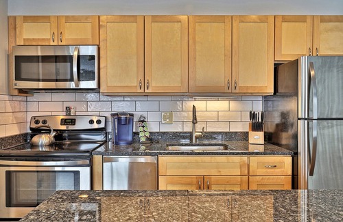 The Mod Suite at Killington is a renovated, three room condo that is the perfect place to start your Killington vacation. Located right in the heart of everything Killington has to offer, you and your family and friends will love our modern, fully remodeled property that is fully equipped with everything you could possible need for your holiday. Walk into the private entryway and you'll have access to our two units - the main studio suite with king bed in the master bedroom, living area with queen bed and sofa bed, dining area, kitchen and two bathrooms; and the bedroom suite with two queen beds and third ensuite bathroom. (Note: this listing is for two units connected by a private hallway.)