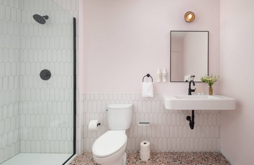 The bathroom is equipped with Malin + Goetz bath products, combo washer/dryer, plenty of towels and other essentials (i.e. hair dryer, etc.).