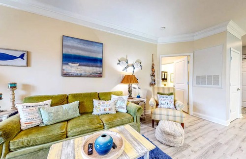 One of the special features of this condo is its whimsical style, evident in its three-themed bedrooms. Each room has its own direct patio access, allowing all guests to take in gorgeous nightly sunsets of Calabash over the pond.