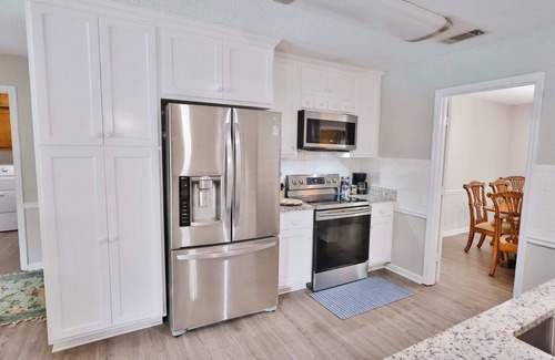 Besides the expansive swimming pool and outdoor patio, the house includes a game room/sunroom with a ping pong table. In addition, this house includes, a full laundrey room with washer, dryer, and portable steamer, and a king sized bed and full private bath in the master bedroom.