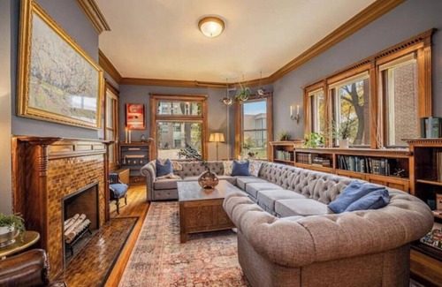 The Prospect Mansion & Loft is a two unit Mansion centrally located in the heart of Milwaukee's arts and entertainment district. Just steps away from the lakefront and some of Milwaukee's finest restaurants, bars and shops. With 2 kitchens, 11 Bedrooms and 5.5 Baths, the home comfortably accommodates groups of up to 30, including small weddings and corporate gatherings. The main floor is set to entertain with a grand foyer that spills into a living room, study, and large dining room.