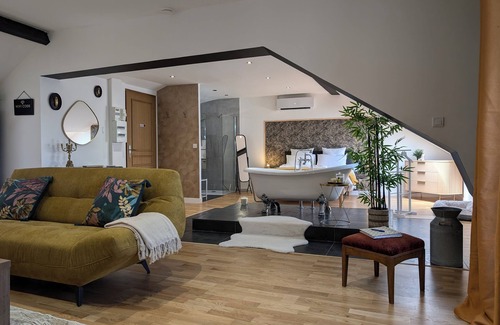 You will enjoy as a couple or alone, relaxing out of time, in its relaxation area, made up of an old cast iron bathtub placed in the center of your Suite.