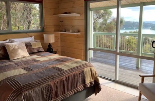 Situated on a large elevated section, screened by bush and at the end of a cul-de-sac guests have access to the entire lower level of the house and upper-level mezzanine and deck, with ample parking for two cars or a car, and a small boat.