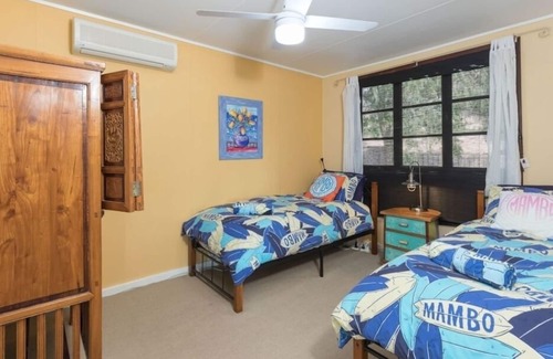 Boasting 4 bedrooms all with air-conditioning (cooling and heating) and 2 bathrooms plus an outdoor shower, there are 2 x queen beds and two rooms with 2 x single beds each and a comfy sofa double bed in the living room. New memory foam pillow top mattresses and hotel luxury bedding by designer Peter Morrissey with goose down pillows and quilts.
