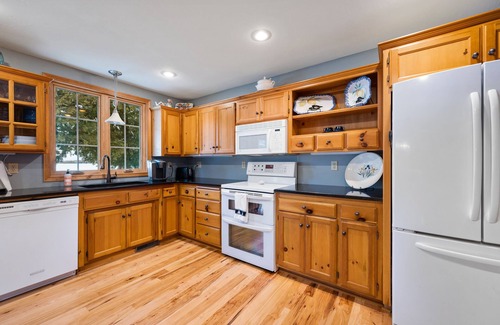 The retreat comes complete with two paddle boards and a two person kayak for exploring Clark Lake. The trails in Whitefish Dunes State Park start across the street from the driveway as well as a short walk over the dunes to the beach. Relax and spend time together on the large deck, lower patio and dock during the day and around the fire pit overlooking the lake when the stars come out at night.
