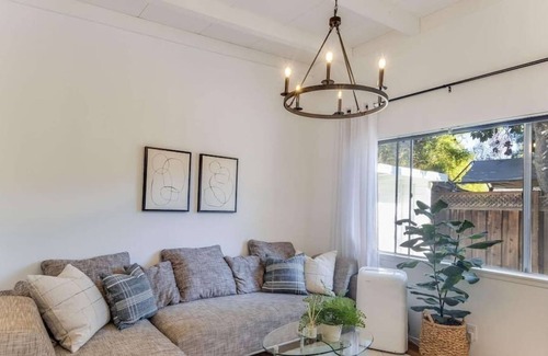 Like new, 1-bedroom 1 bath home in a triplex minutes from Google HQ. Home has been rebuilt from the studs with top of the line designer furnishings, kitchen essentials, appliances, and toiletries. Couch, work desk, and Amazon Fire TV with Disney+, Hulu, Youtube TV, Prime Video, Netflix. Bedroom features Serta iComfort mattress. Fully stocked kitchen with Nespresso coffee machine.