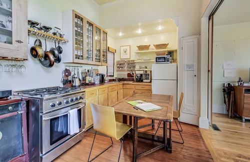 Our beautifully furnished Victorian home in the vibrant Mission District comes furnished with linens, fully stocked eat in kitchen with gourmet range, and spa style marble bath. Amenites include TV, roku player, wireless internet, Sony bluetooth speaker.